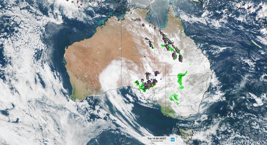 The animation below shows widespread thunderstorm activity extending from the NT’s Top End to the coast of SA over the last 24 hours.