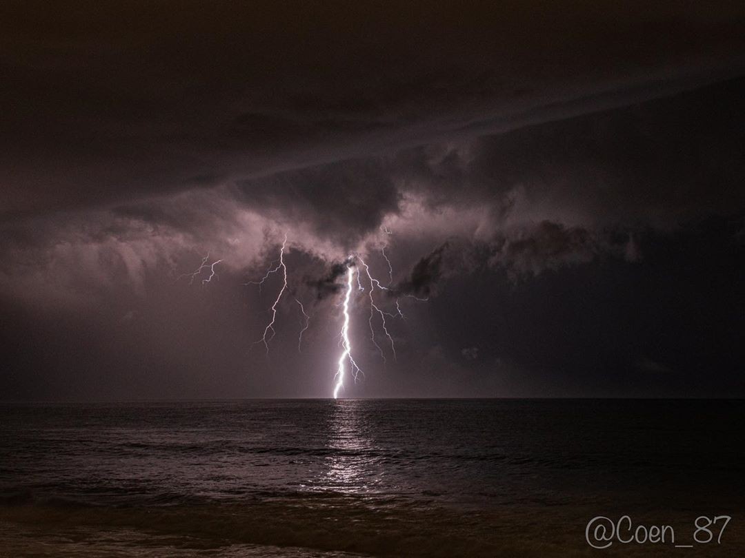 Image: Lightning strike near Burns Beach, WA on Sunday night. Source: @coen_87 / Instagram