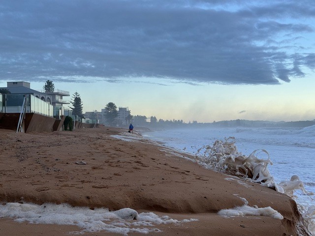 Image: Large surf overnight caused significant beach loss across Sydney, coming close to properties at South Narrabeen.