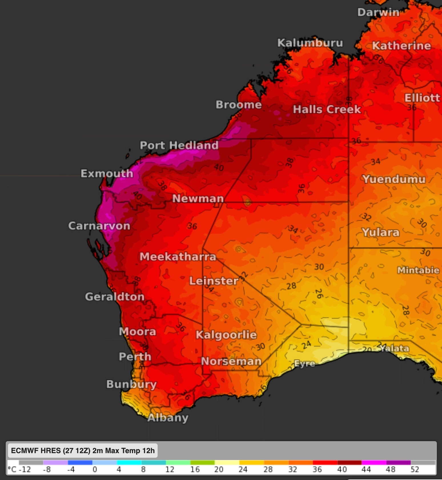 On Sunday, the heat won’t be as intense in Perth with tops of 33°C predicted and up to 35°C in the eastern suburbs. However, the heat is spreading further out, with Great Southern and South Coastal districts now seeing the peak of the heat, with temperatures 10-14 degrees above average for November, reaching the high thirties.