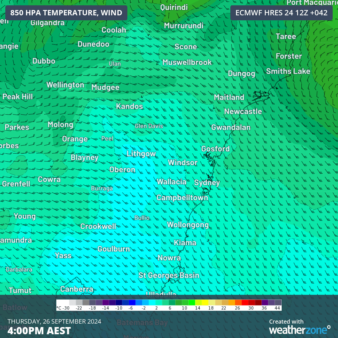 The map below shows the strong southerly change arriving in Sydney between 3 and 4am on Thursday, September 25.