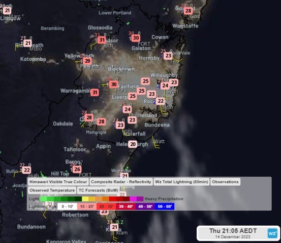 Westerly winds that dominated during the day started to give way to southerly winds when the southerly buster arrived at about 8:30pm bringing wind gusts of 50-70 km/h.