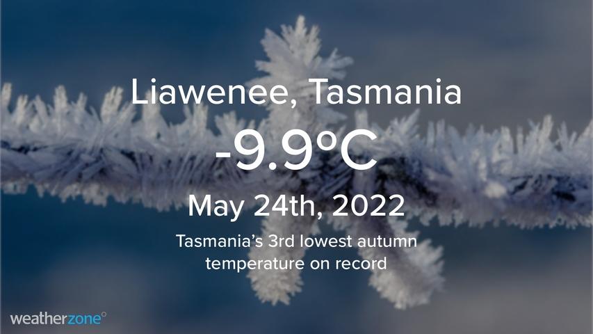 Tasmania’s lowest autumn temperature on record is -10.5ºC at Liawenee on May 30, 2006. The national autumn record is -13.4ºC at Charlotte Pass in NSW on May 24, 2008.