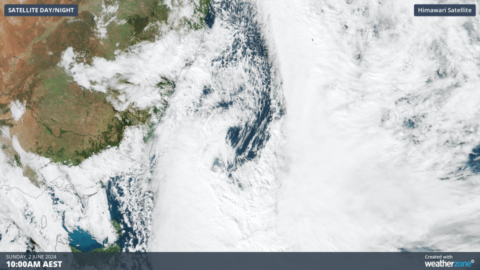 The threshold for a bombing low pressure system differs depending on latitude. For example, at 60° latitude in either hemisohere, a pressure drop of 24 hPa in 24 hours is required a system to be classifies as a bombing low. But at Sydney’s latitude around -34° south, a system’s central pressure only needs to drop by around 16 hPa in 24 hours for it to be a bombing low. This made the weekend’s 19 hPa pressure drop more than enough to call the Tasman Sea system a bombing low.