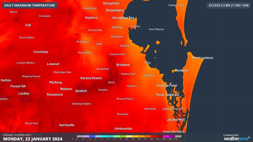 Fig. 1) Maximum daily temperature for Brisbane as shown by ACCESS-C (Sun 21 00Z)