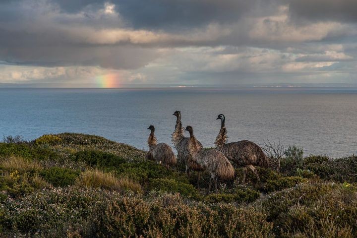 There's more than meets the eye to this great photo of four emus in Dhilba Guuranda-Innes National Park on South Australia's Yorke Peninsula.