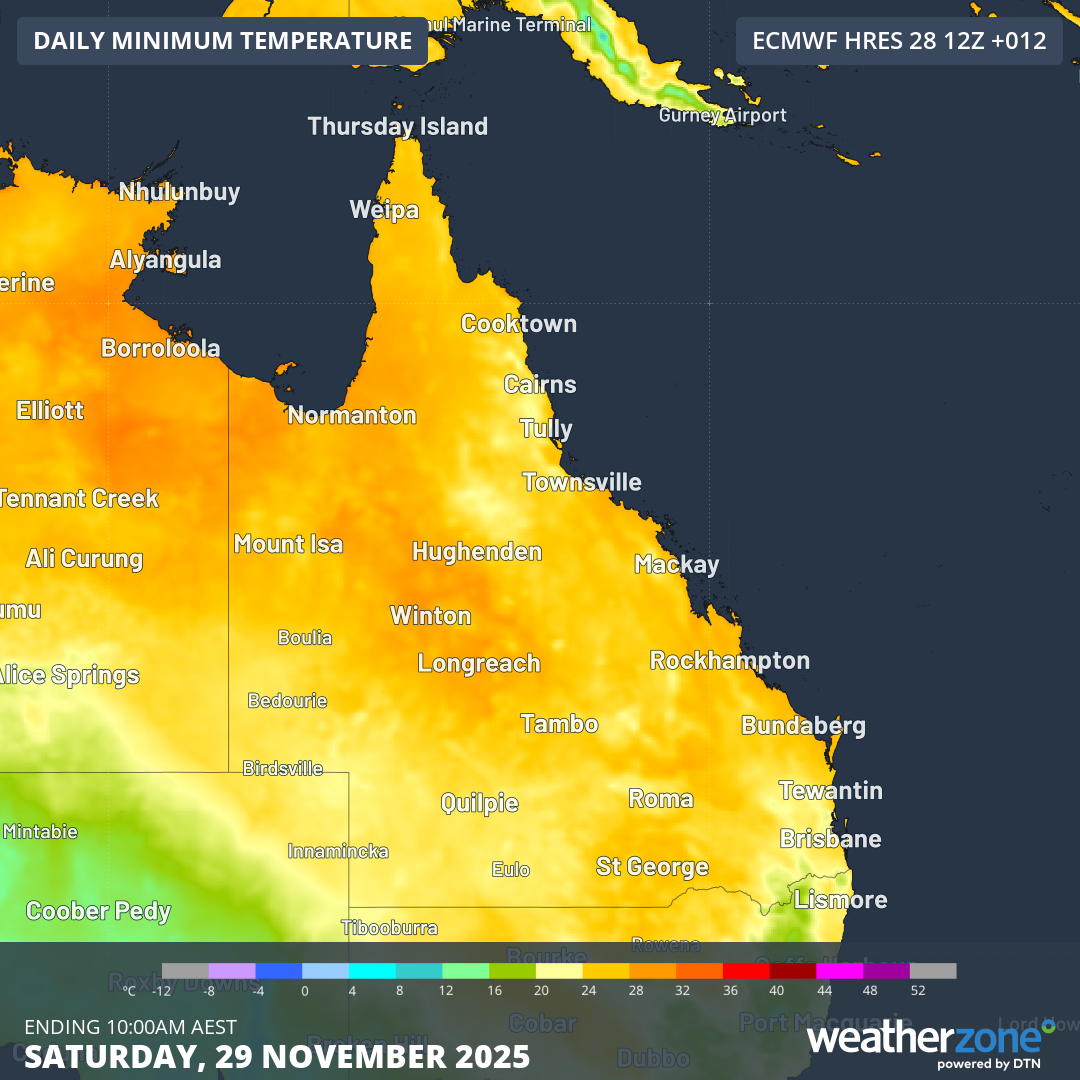 Most of Queensland remained above 24 degrees through the penultimate night of November 2025, making it the hottest November night on record for many cities in the state.