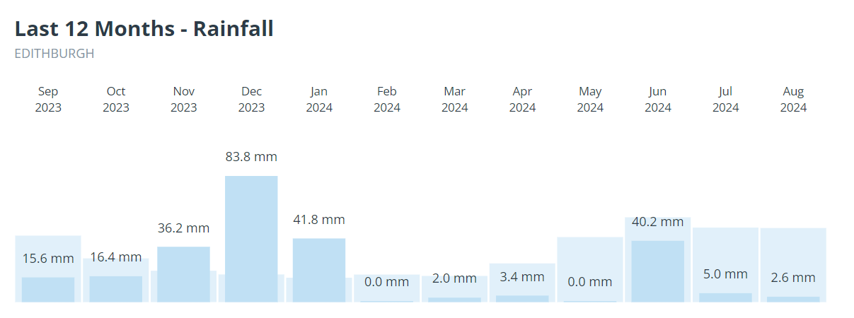 As you can see, only January and June have been wetter than the long-term average to date in 2024, and not by much.