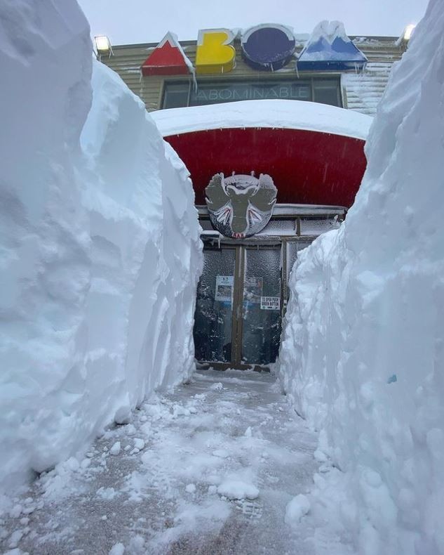 The resort's official accumulated snow depth is 94 cm, but a lot more than that has fallen, and with natural drifting of snow in the strong winds, plus snow clearing, you can end up with snow walls that are literally metres high.