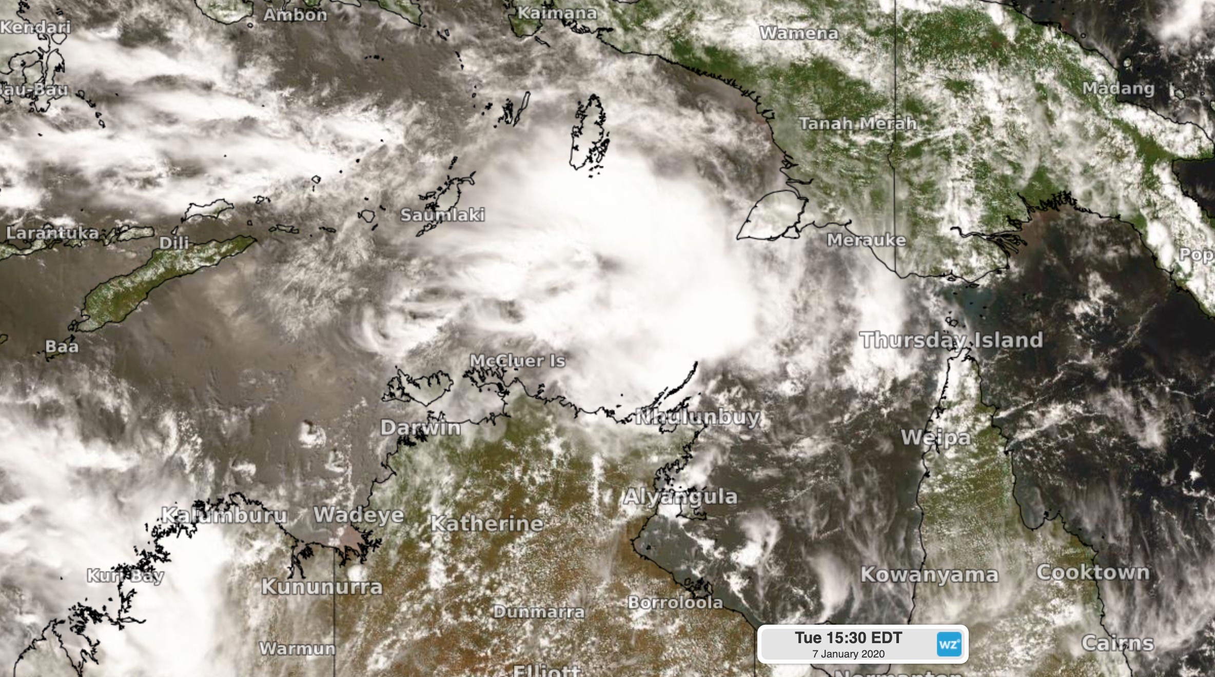 Image: Cloud associated with a tropical low over the Arafura Sea on Tuesday afternoon.