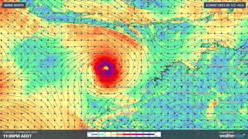 Cyclone Freddy is likely to gain strength over the next few days as it continues to move towards the southwest then west, roughly parallel but well off the northern coastline of WA. With plenty of warm, open water to fuel the strengthening cyclone, Freddy should reach category two intensity later today and may become a category three severe tropical cyclone on Wednesday.