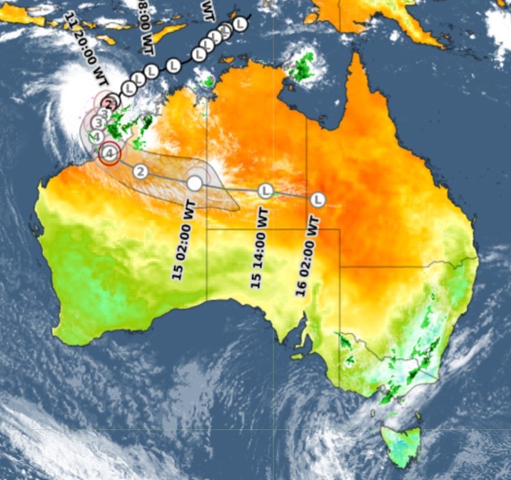 Ilsa is expected to maintain tropical cyclone intensity as it tracks further inland across WA's Northern Interior forecast district towards the NT border.