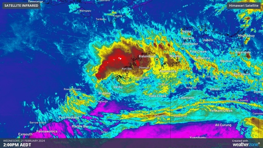 Image: Ex-Tropical Cyclone Lincoln location over the Kimberley district in WA on Wednesday, February 21.