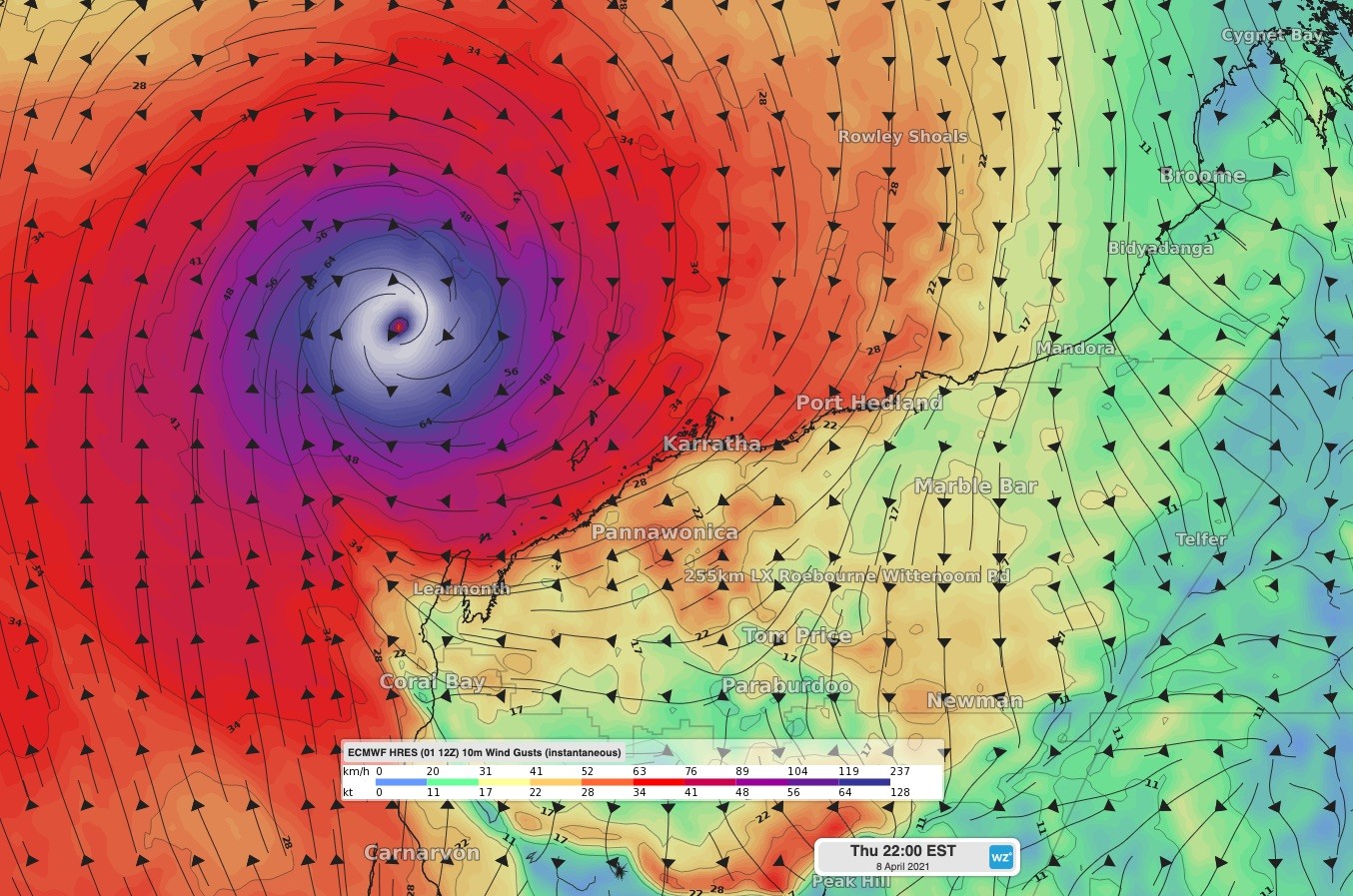 At this stage, the tropical cyclone would be near places like Exmouth around Thursday or Friday next week. Unfortunately, some models do have the system crossing the coast anywhere between about Onslow and Carnarvon, possibly as a severe tropical cyclone.