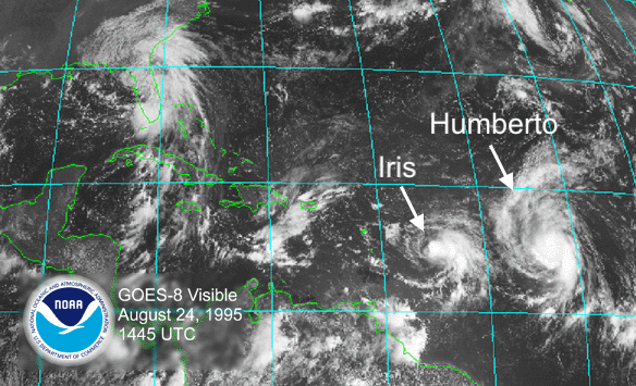 Image: Iris and Humberto in close proximity on August 24, 1995. Source: NOAA