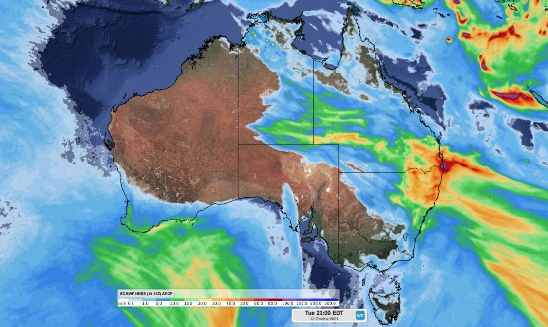 As you can see above, there'll likely be nothing too spectacular in terms of overall totals inland (though the extent of the area where it could rain is reasonably impressive), but the southeast corner of Queensland could be in for a bit of a drenching on Tuesday, as could northeastern NSW.