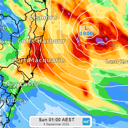 Image: forecast low pressure system and 24-hour rainfall and to Sunday morning September 4.