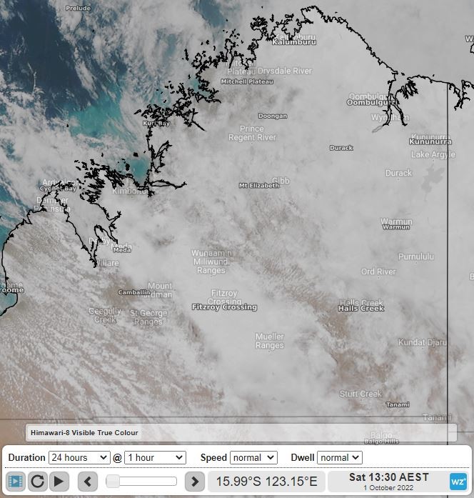 Image: Extensive cloud blankets the Kimberley region on Saturday afternoon. Source: Himawari-8 Satellite