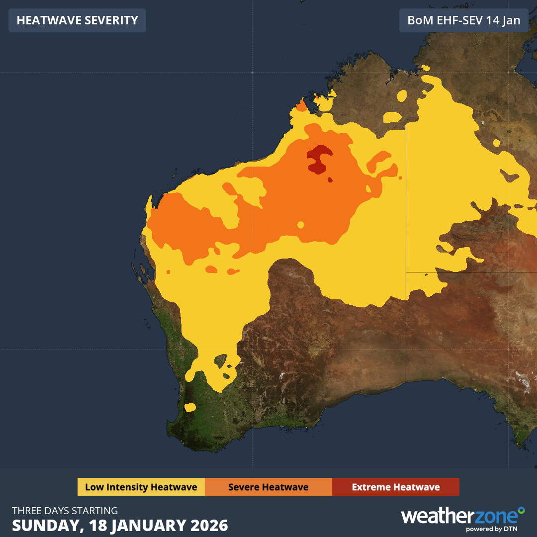 Even the Lower West (where Perth is located) and South West have low-intensity heatwave warnings current, although by far the most severe heat is further north and further inland.