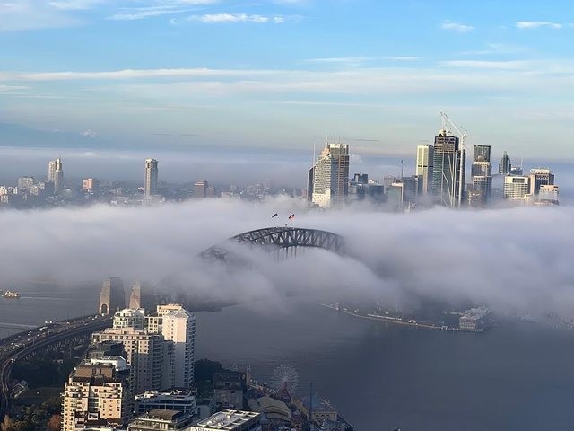 The photos below show the foggy scenes across Sydney on Friday morning.