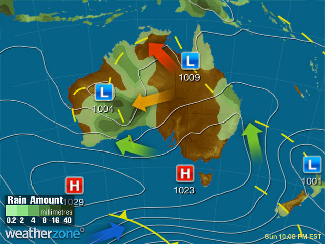 Image: The predicted synoptic chart (issused on Thursday) for Sunday evening. Any showers in Sydney should be very brief and light.