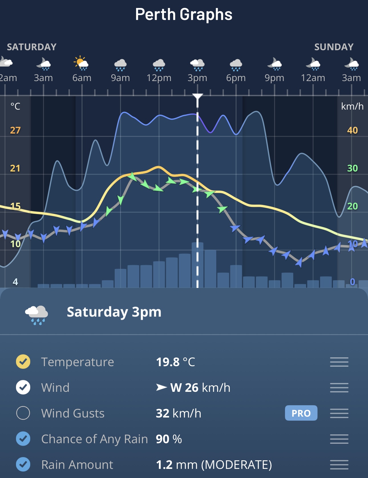 Image: Hourly Graphs for Perth on the Weatherzone app.
