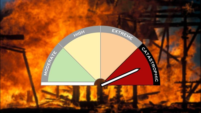 The highest level of fire danger in Australia is catastrophic fire danger. These are the most dangerous conditions for a fire. Life may depend on the decisions made, even before there is a fire. People should go to a safer location early in the morning or the night before if possible. Homes cannot withstand fires in these conditions and if a fire starts, people may not be able to leave, and help may not be available. These are days with a Fire Behaviour Index (FBI) value of 100 or higher.