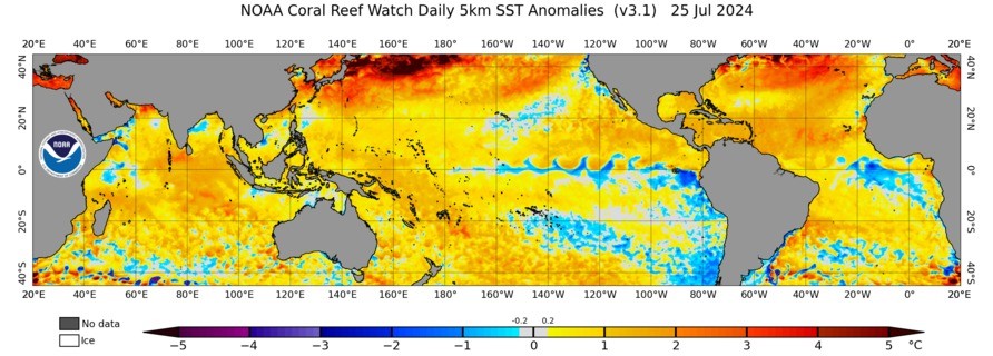 Animation: Weekly SST Anomalies from 1st May to 17 July 2024. Source: NOAA. For a higher resolution animation of daily SST anomalies see here.