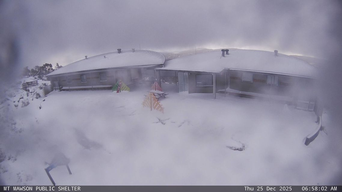 It's a white Christmas in the heart of summer in Australia's southernmost state, as snow falls in elevated parts of Tasmania this Thursday, December 25, 2025.
