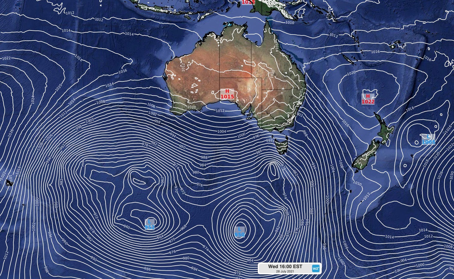 This large pressure gradient is creating powerful winds as the atmosphere attempts to balance things out. Unfortunately, Australia just happens to be in the firing line of this atmospheric stand-off.