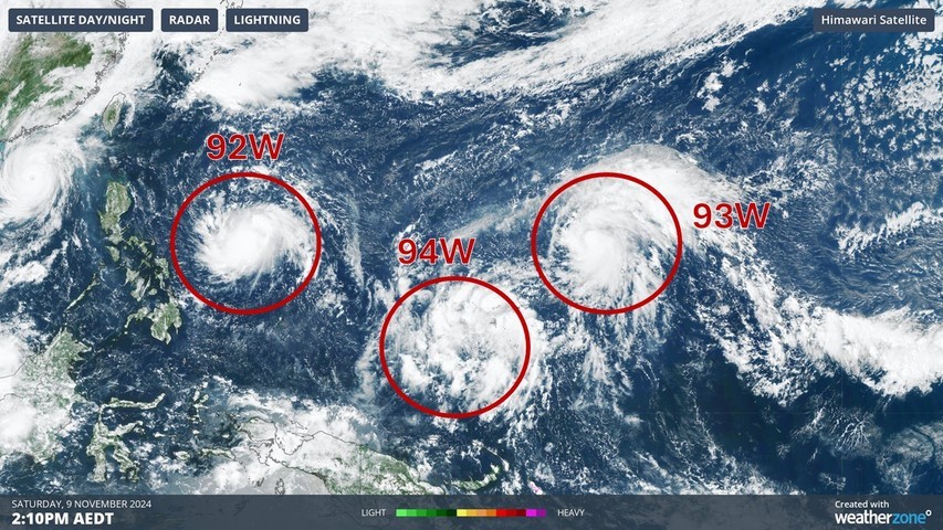 Fig. 1) Clouds in the western Pacific becoming more organised as independent low pressure systems persist.