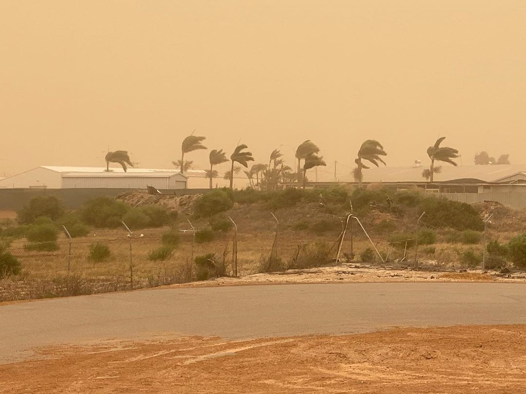 Image: Dust blows through Geraldton on Sunday as blustery winds hit Western Australia. Source: @the.pascoe.clan / Instagram