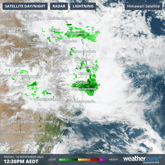 The combination of heat and humidity has already brewed up storms in the northeast corner of New South Wales from around Tamworth to Byron Bay this Friday.
