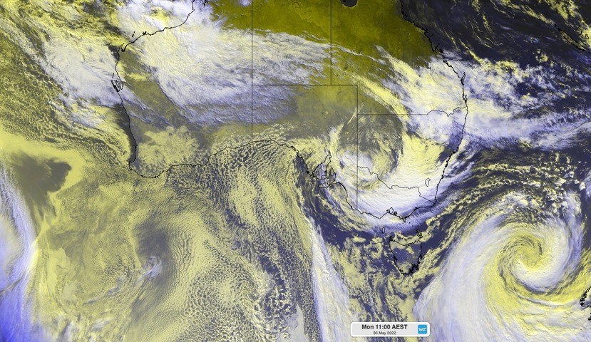 If you are in southern SA, you will want to rug up for the next couple of days as a cold air mass sweeps in behind this series of lows and fronts. Adelaide’s forecast maximum temperature of 14ºC on Tuesday would be the city’s coldest day so far this year, and this cold snap will be exacerbated by wind chill.