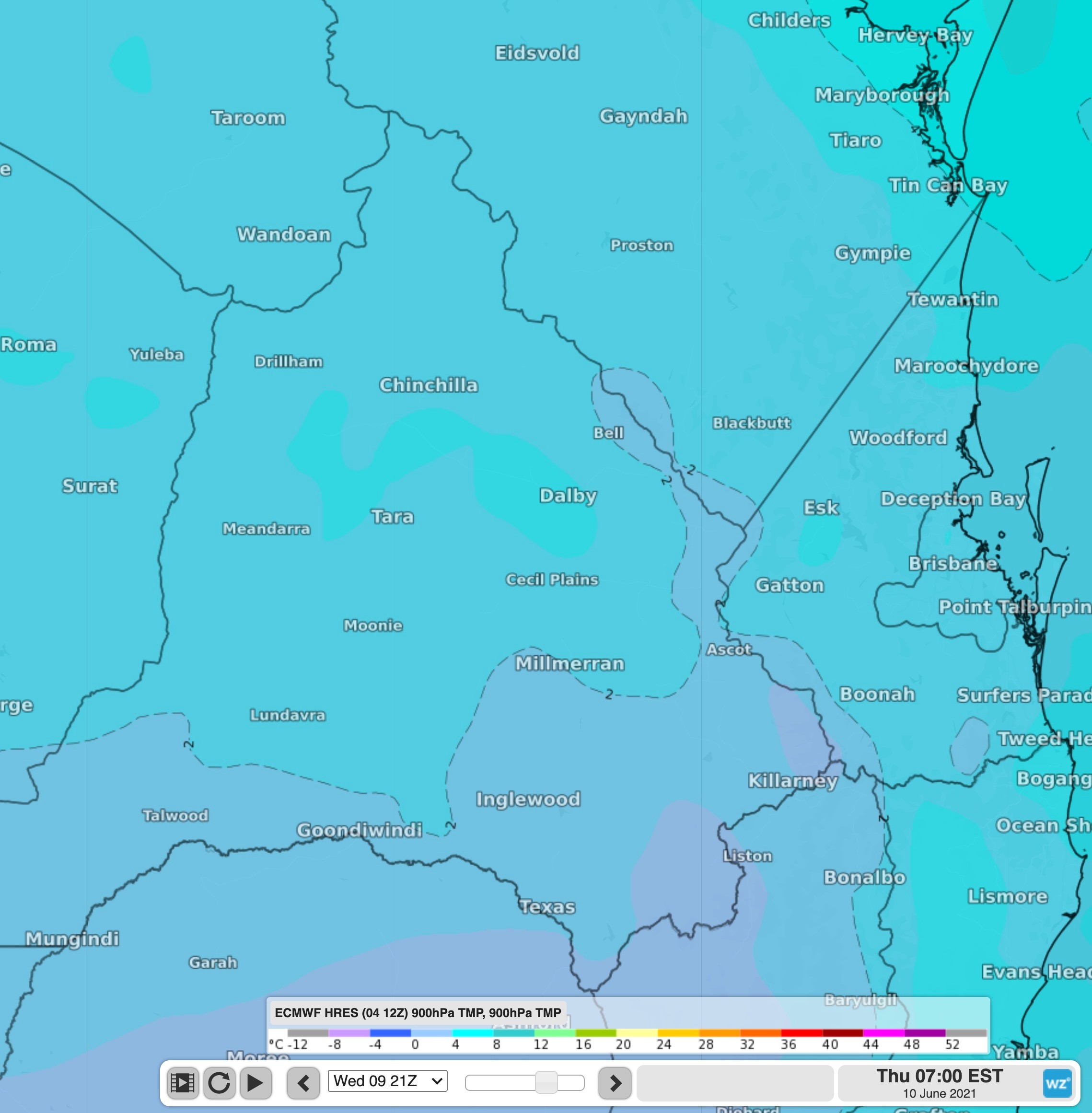 There is the potential for snow to fall as low as 900m over the southern ranges of Queensland on Thursday morning. The question therefore is not will it be cold enough for snow, but rather will there be enough moisture for showers to fall as snow?