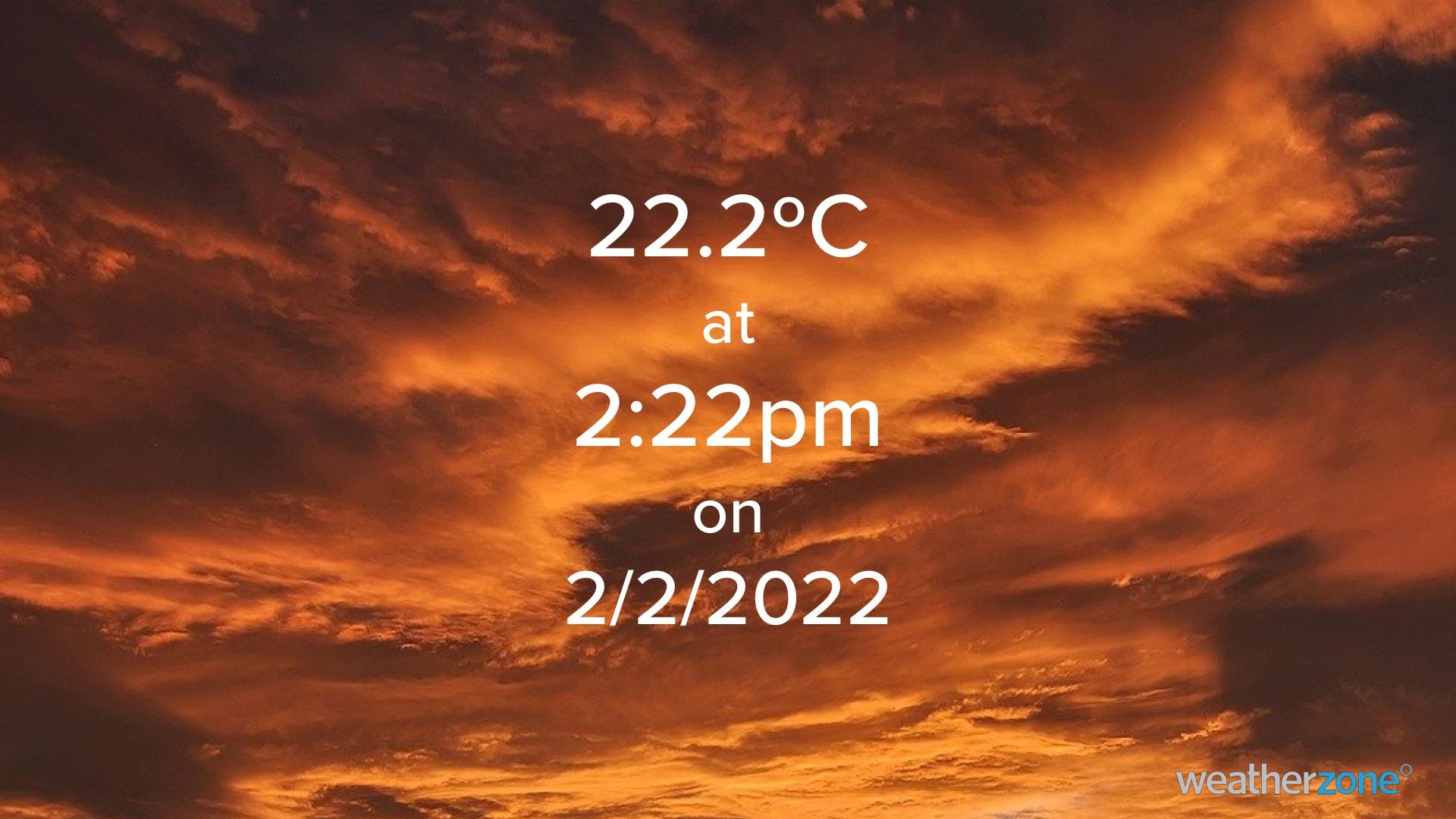A few hours later, keen weather watchers in Australia were chuffed when Adelaide reached a maximum temperature of 22ºC. Unfortunately, the mercury nudged a little too high in the city and ended up hitting 22.4ºC. However, according to the Bureau of Meteorology, Minnipa on the Eyre Peninsula was sitting on 22.2ºC at 2:22pm.